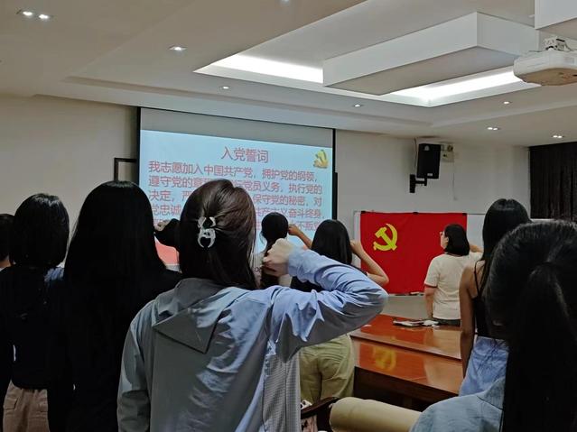 活动最后,日语学院及英语学院学生党支部全体党员面对党旗,重温入党誓词。