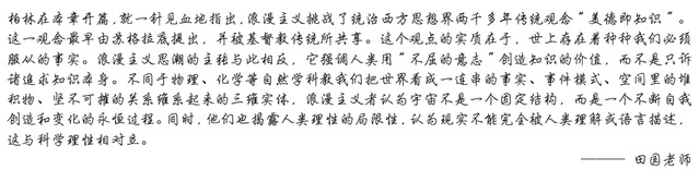 曾光老师首先简要分析了第一章的内容。从本书第一作者Berlin关于浪漫主义定义陷阱(trap)的阐释,到关于浪漫主义精髓的5点分析,对比了浪漫主义和文艺复兴/启蒙运动,最终落脚到文学即人学,文学研究的终极意义在于使我们成为更好的人。