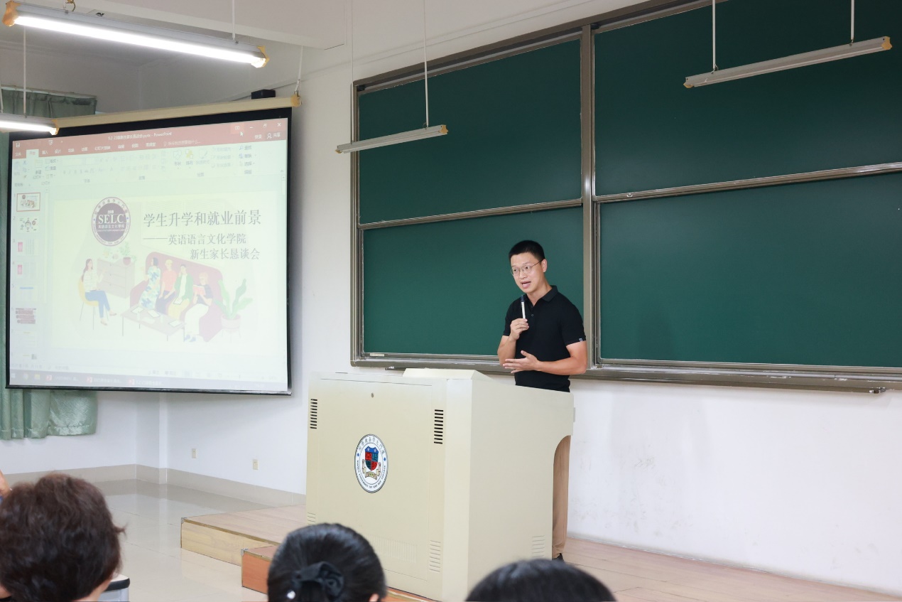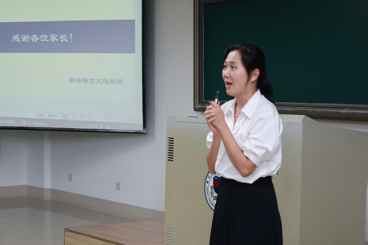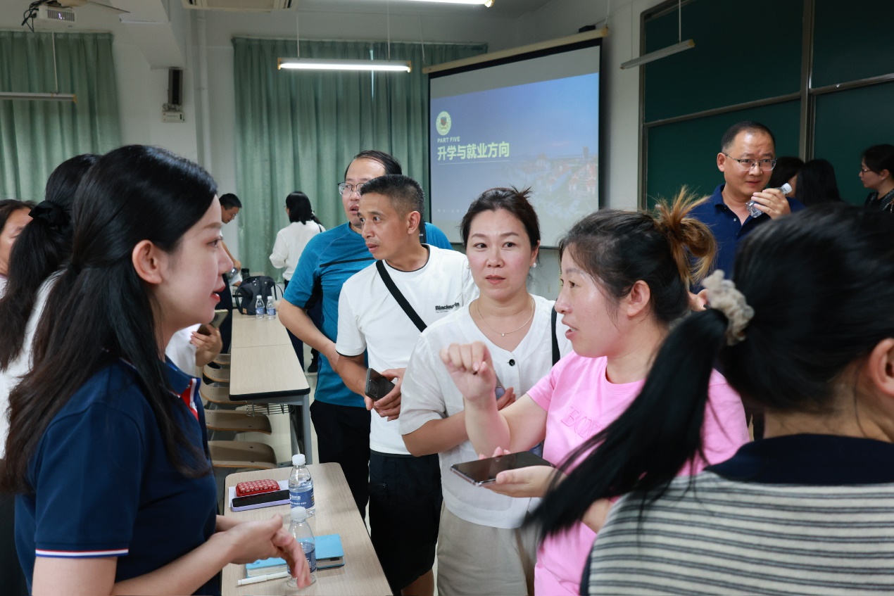 最后,郭瑞芬老师借助图表展示升学就业前景与案例;陈毓榕老师和林昕老师对英语专业学风情况进行简要介绍,并强调了家校合作的重要性。