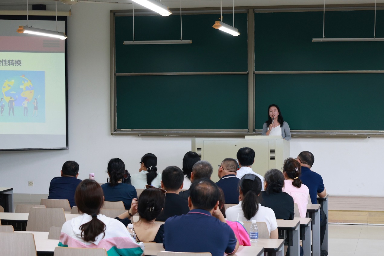 随后,蔡绵绵老师以电影名翻译为例,说明语言学习是文化、情感与思维的融合;陆帅老师围绕“变”,倡导三方共育复合型人才。