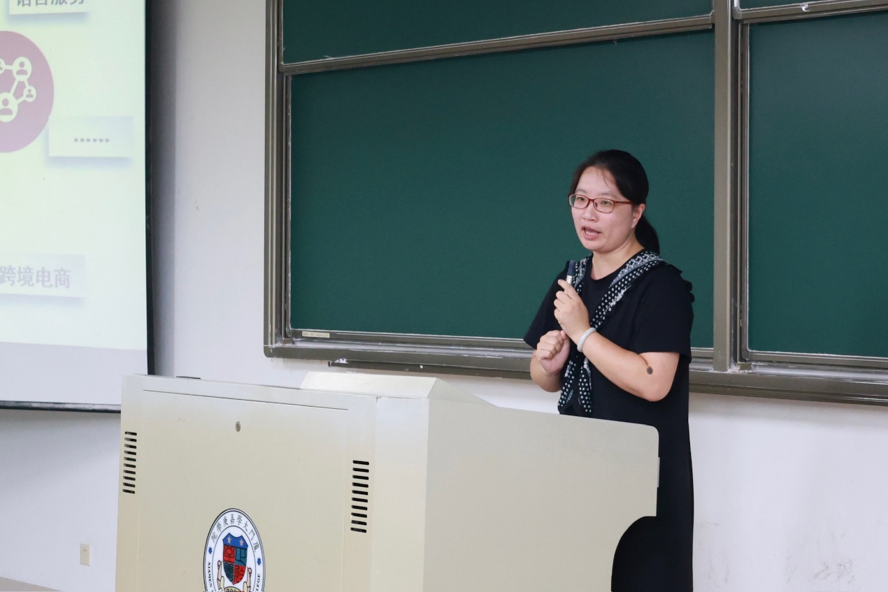 首先,周郁蓓院长全方位地介绍了英语专业,包括教师阵容、课程体系、实践教学等。周院长特别指出,在这个全球化与AI时代,AI 翻译虽便捷,但人文翻译的价值不可替代,学习人文知识对翻译工作至关重要,这是 AI 难以企及的温度与深度。